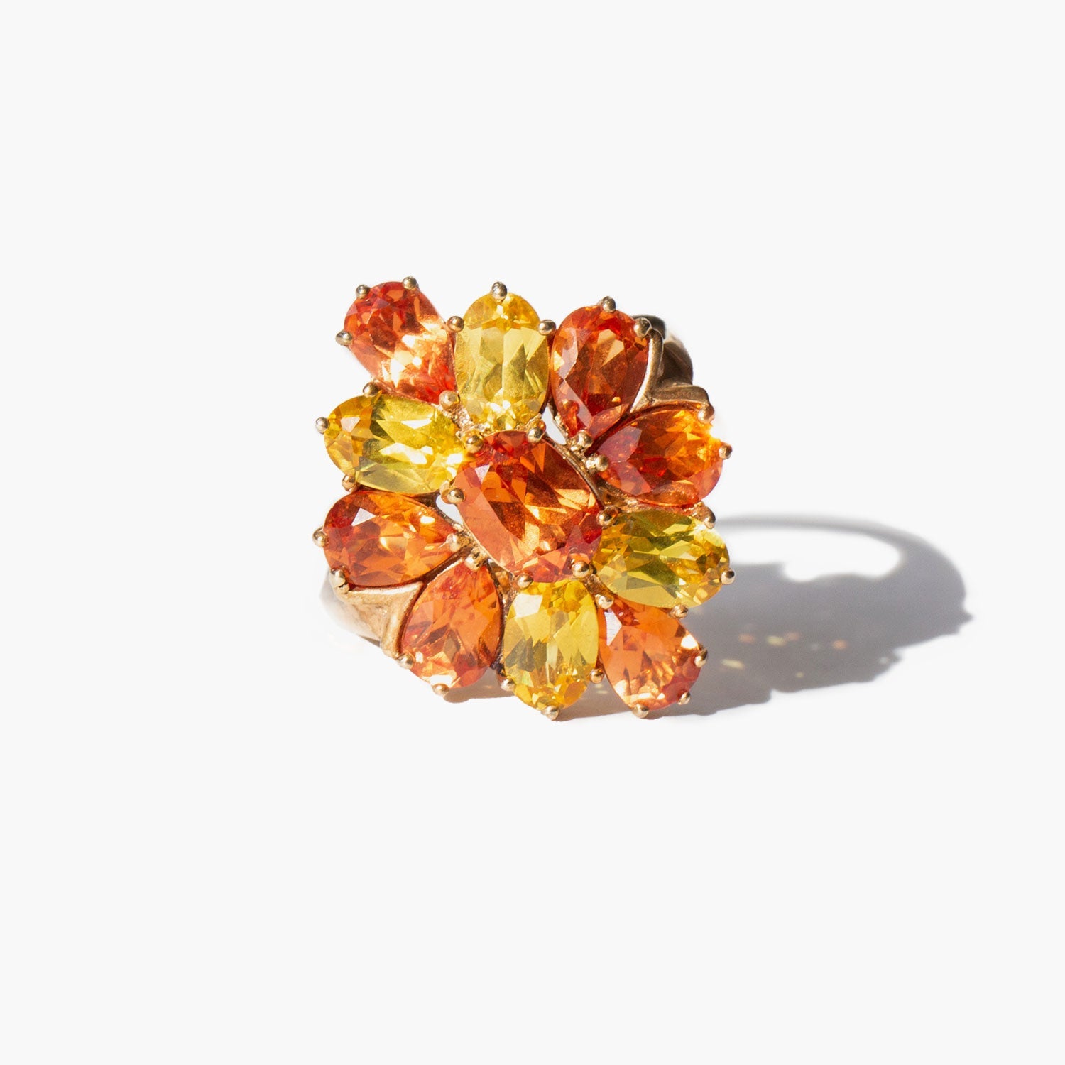 Gold wash sterling silver ring with sparkling crystals in autumnal colors.