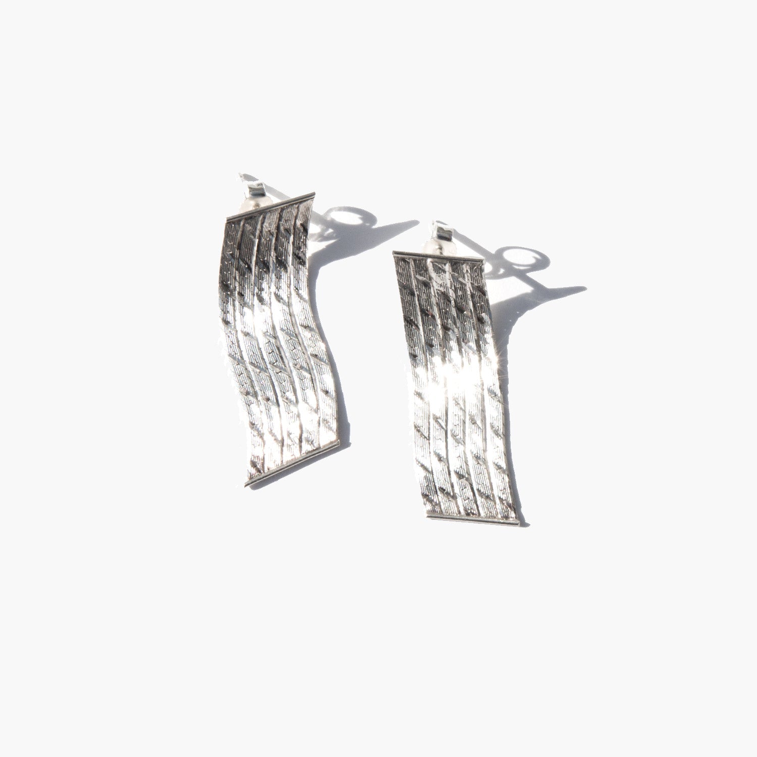 Glittering sterling silver chain earrings.