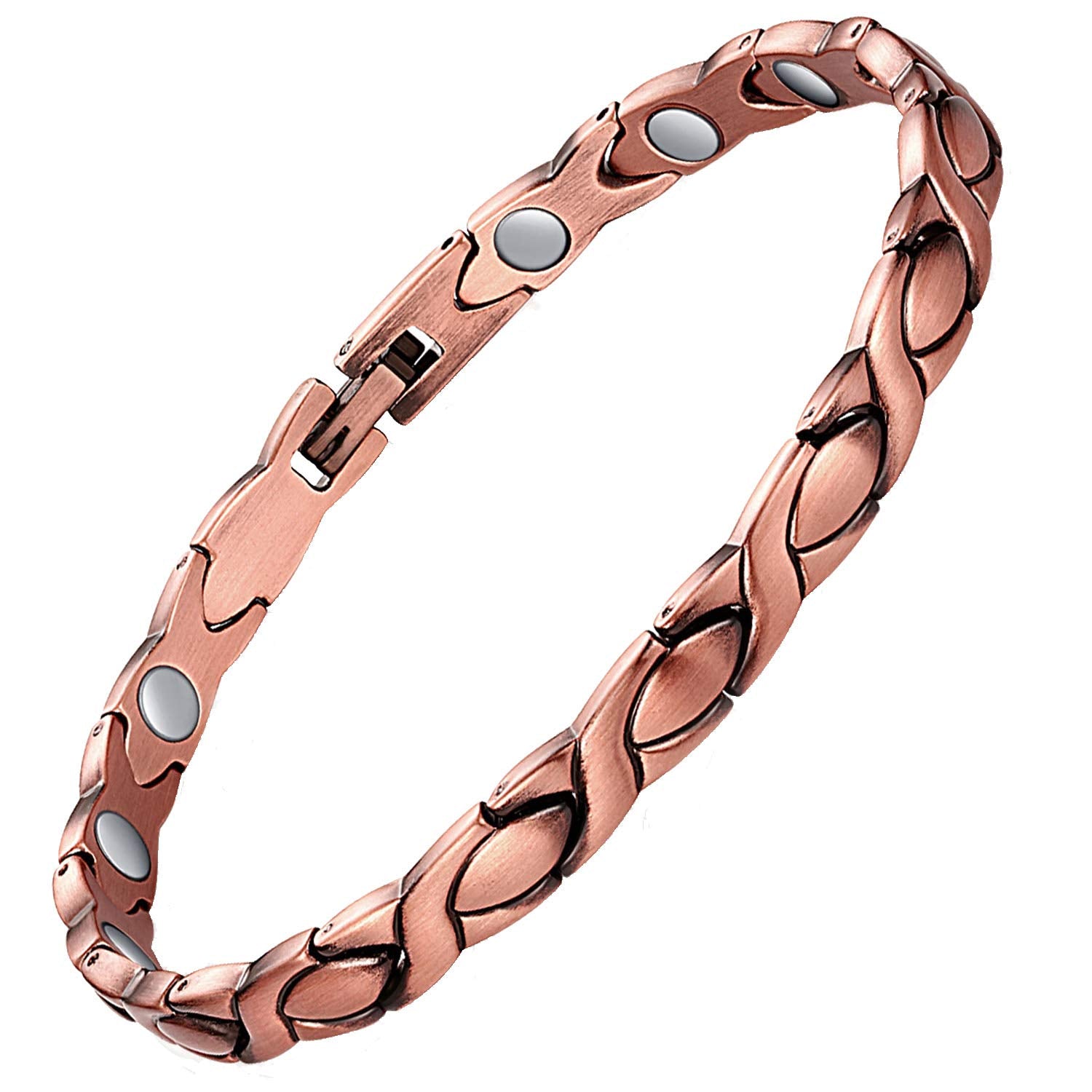 Details: Feraco Copper Bracelet for Women for 99.99% Solid Copper Magnetic Bracelets Unique X Shape Links Magnet Jewelry INTERNAL INJURY HAZARD:Keep away from All CHILDREN,Swallowed magnets can damage internal organs and have resulted in DEATH and SERIOUS INJURIES.