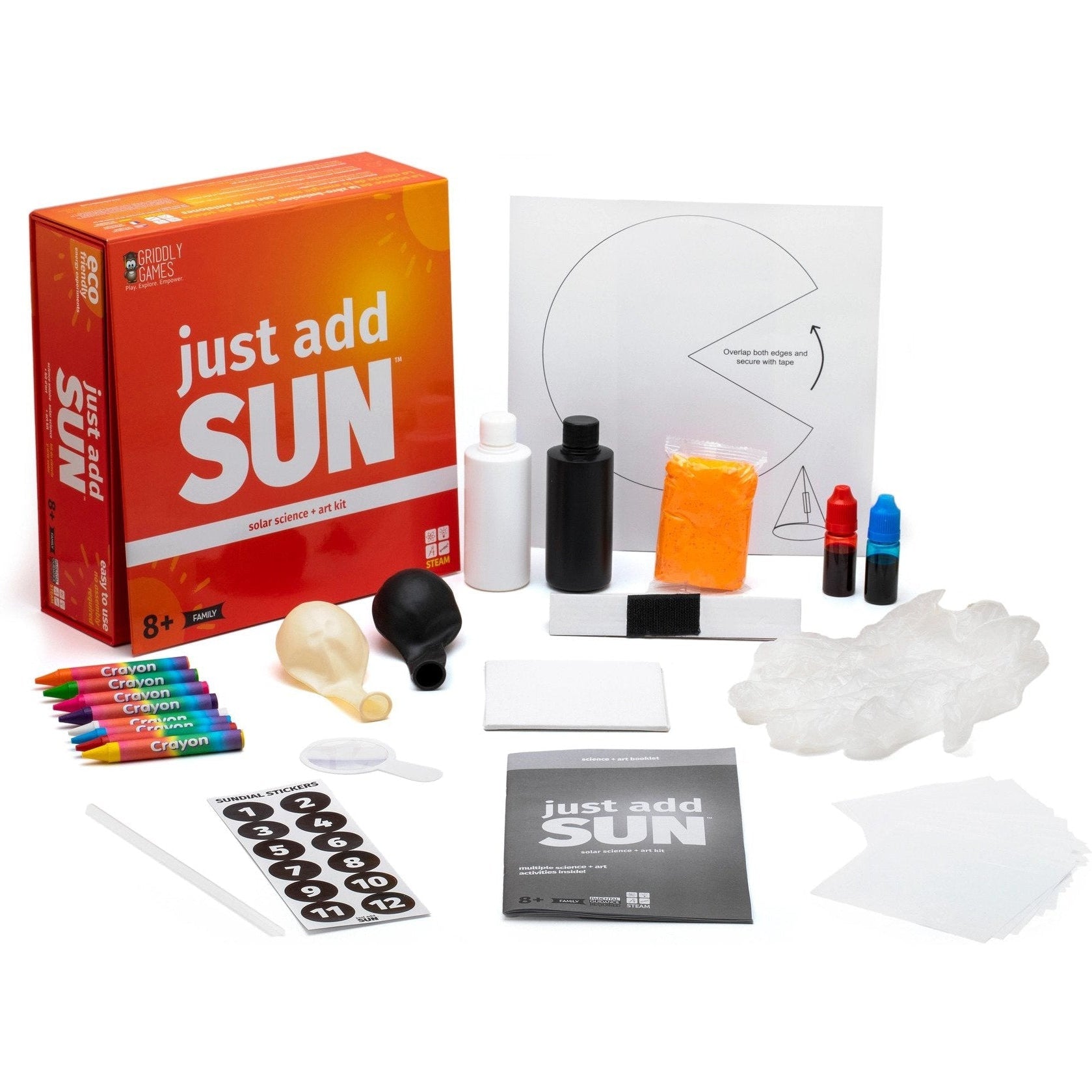 Just Add Sun makes science and art at home easy by using supplies you already have. This kit comes loaded with everything you need for at-home science and art experiments, all you need to do is add the missing ingredient. Use the sun‘s energy to heat up a tasty treat in this STEAM solar oven kit! More than 8 science and art activities including Balloon Blow, Wax Paper Sun Catcher and so much more!