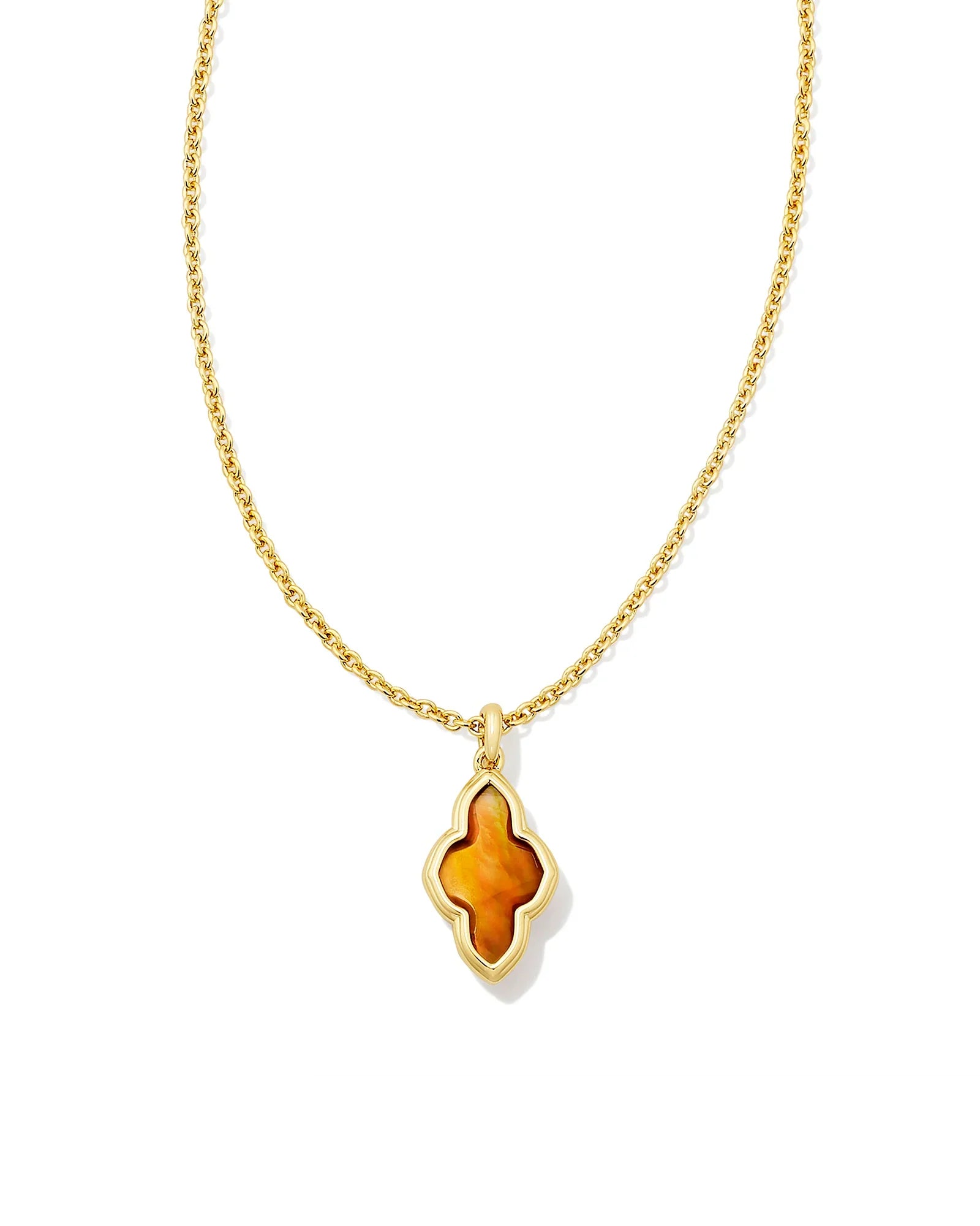 KENDRA SCOTT- Framed Abbie Gold Short Pendant Necklace in Marbled Amber Illusion