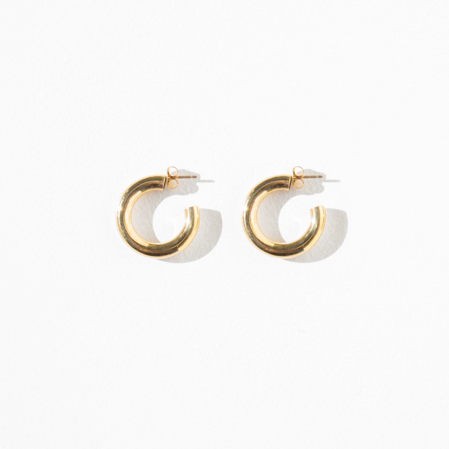 Brass hoop earrings made from lightweight hollow tubing.