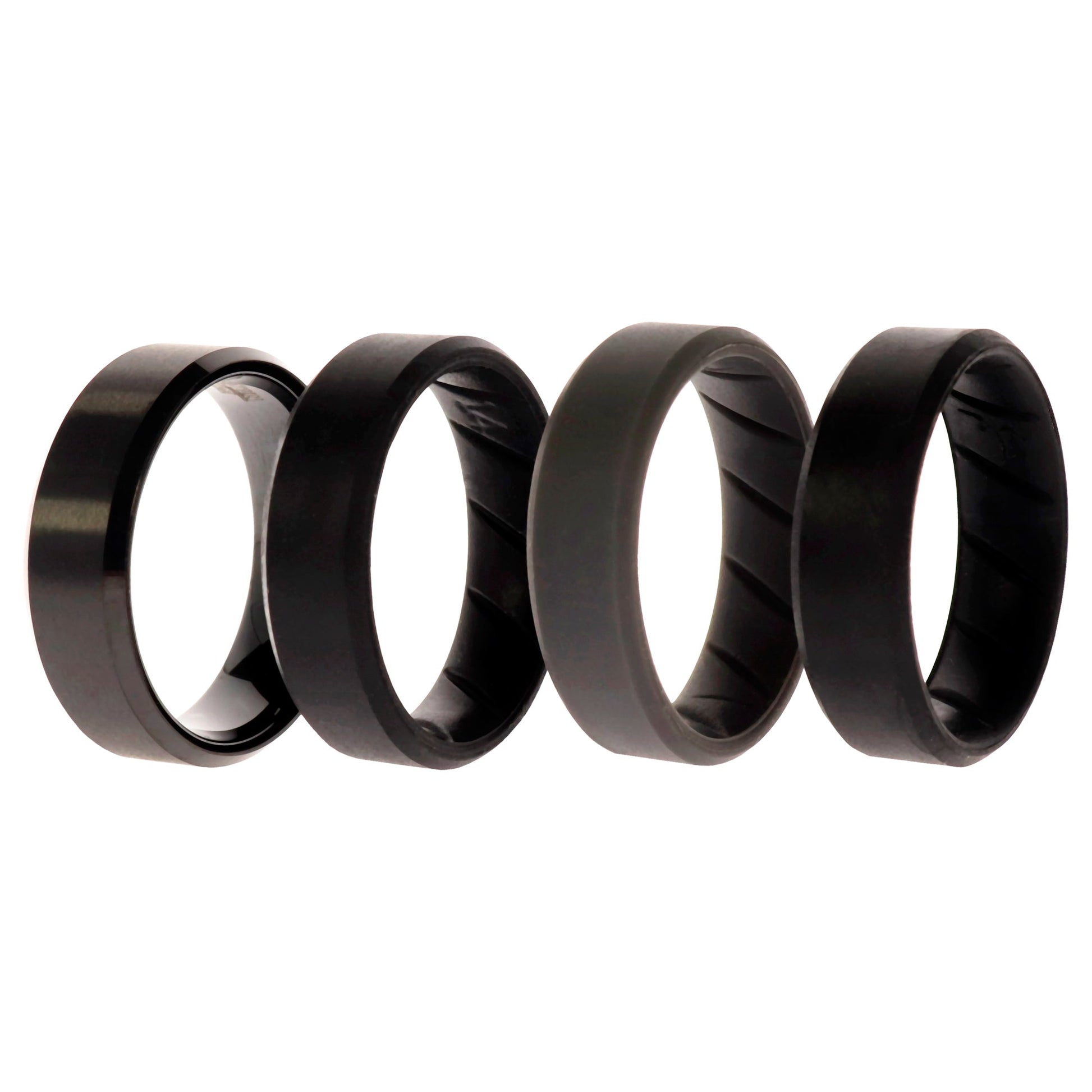 Silicone Wedding BR Twin 8mm Ring - Black by ROQ for Men - 4 x 14 mm Ring