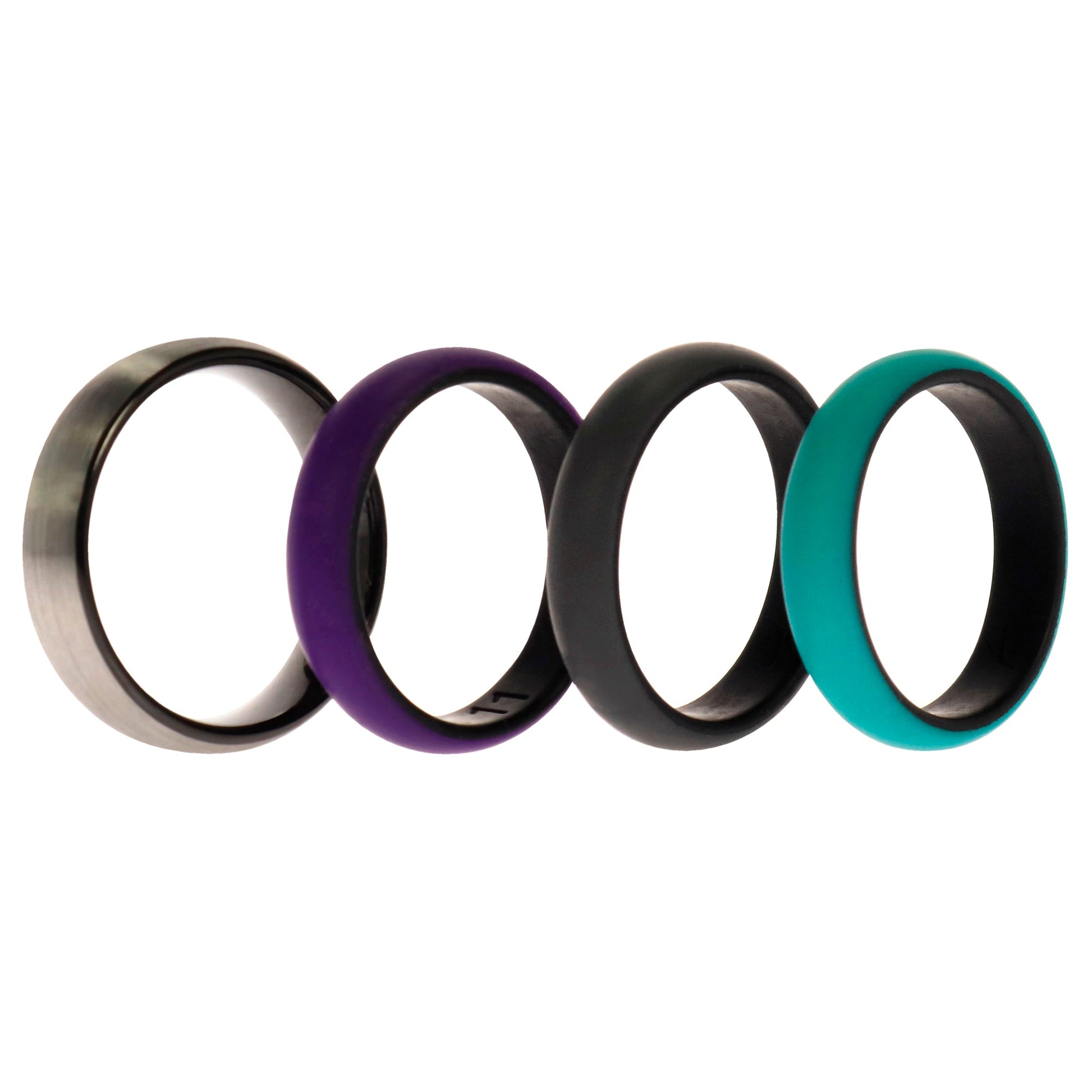 Silicone Wedding Twin Brushed 6mm Ring Set - Turquoise by ROQ for Women - 4 x 11 mm Ring
