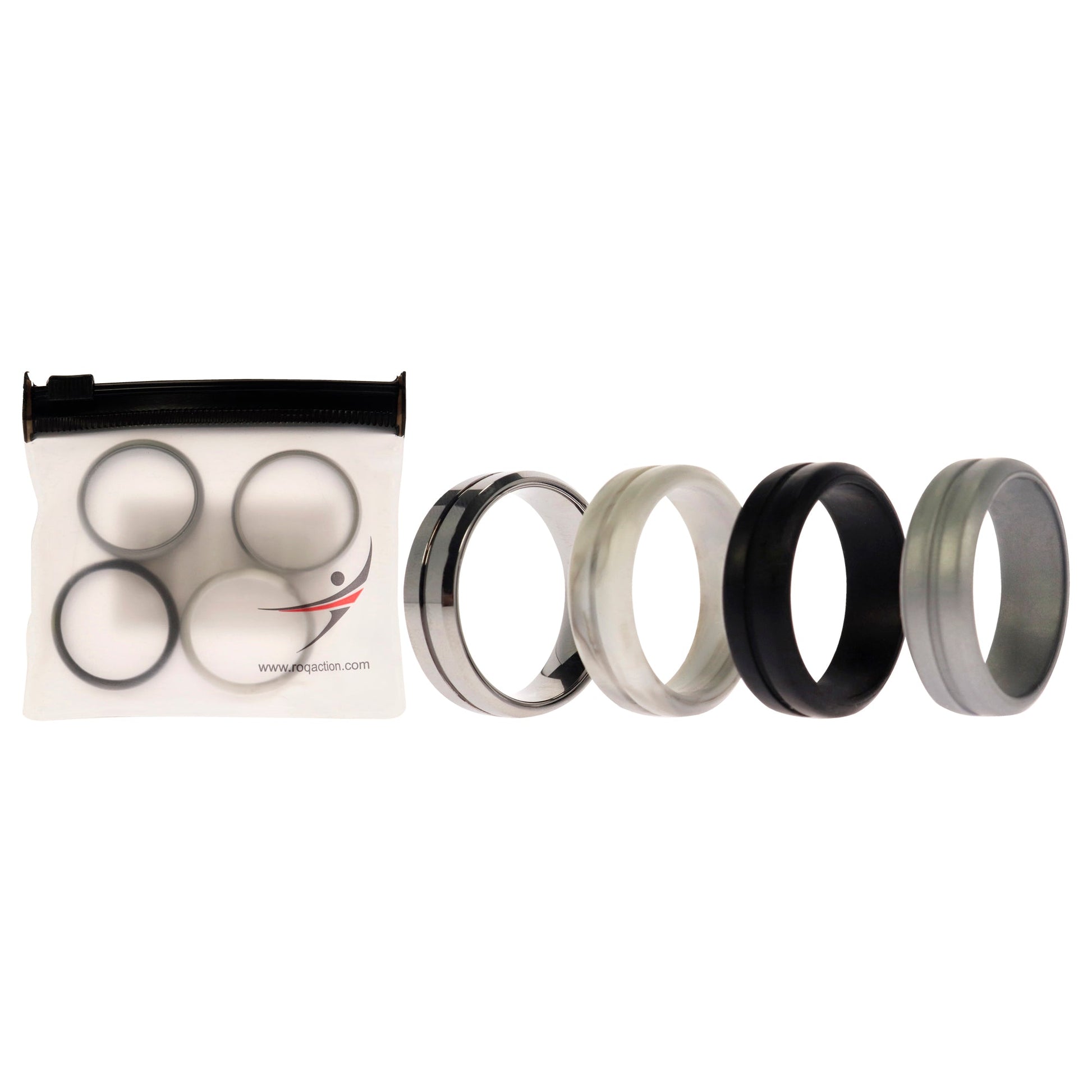 Silicone Wedding Twin Middle Line Ring Set - Marble by ROQ for Men - 4 x 14 mm Ring
