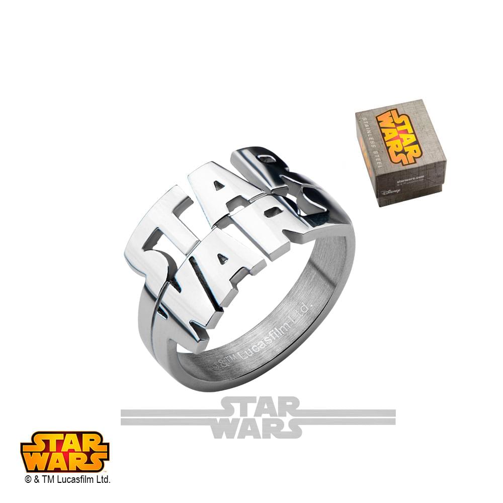 Showcase your love of one of the greatest sci-fi movies ever made! Body Vibe delivers a powerful fashion statement with this officially licensed Star Wars ring. Finely crafted in stainless steel, this ring features a cool cutout of the iconic Star Wars logo. it's sure to make an impression! Men's Sizes. Licensed Jewelry Box Included